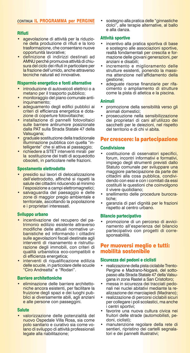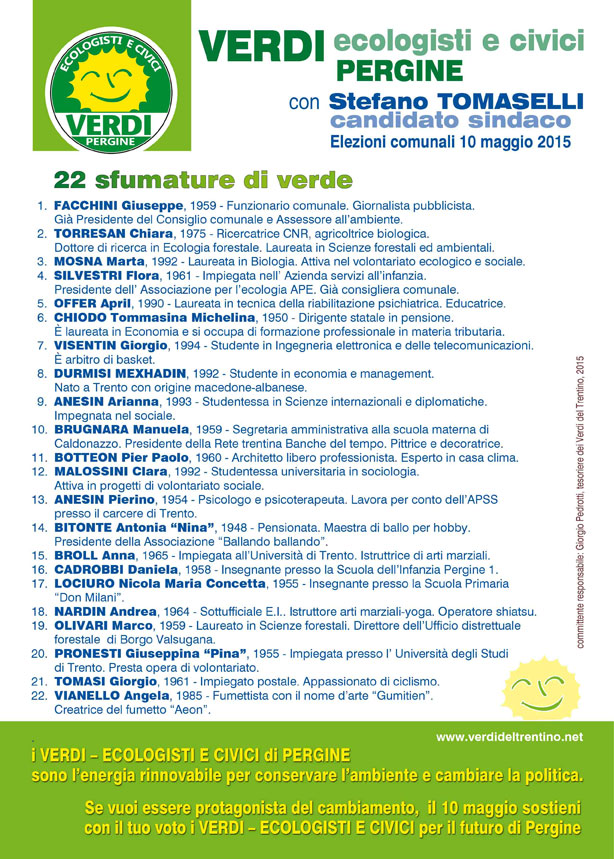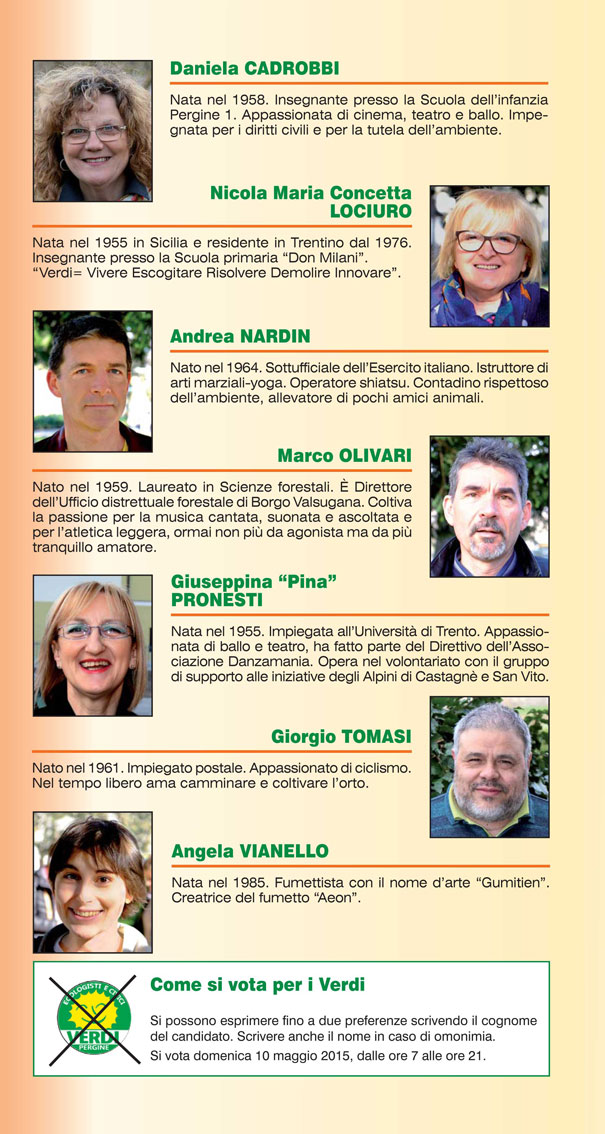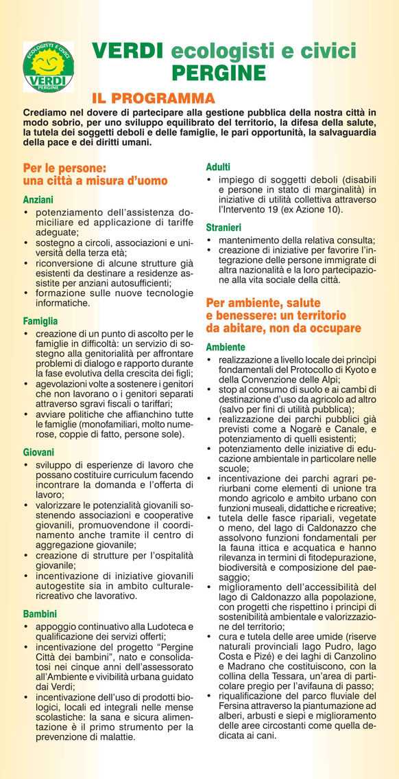 perché votare i verdi    il programma dei Verdi di Pergine   continua il programma dei Verdi di Pergine   continua il programma dei Verdi di Pergine