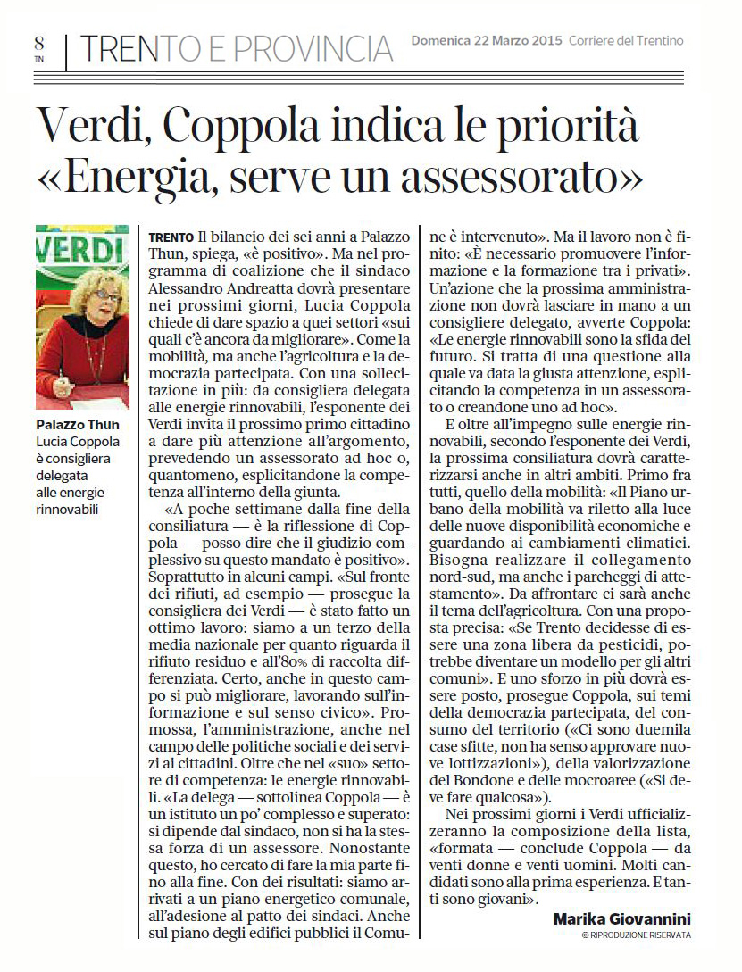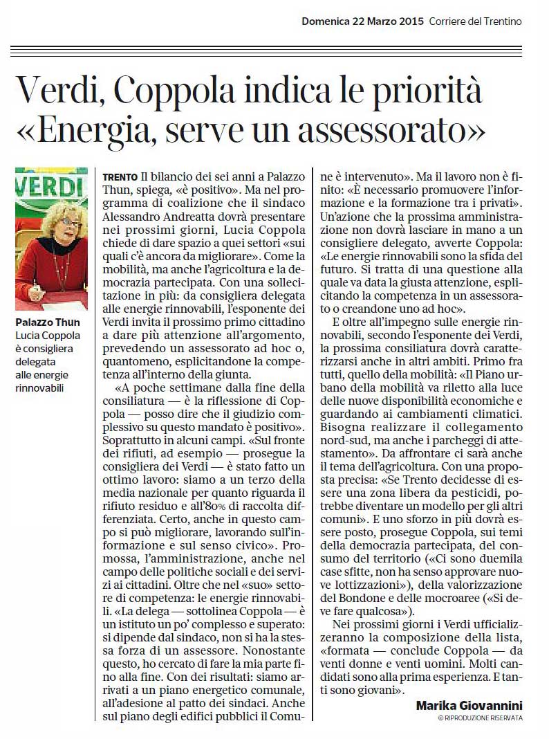 di Lucia Coppola, Consigliere comunale Verde a Trento