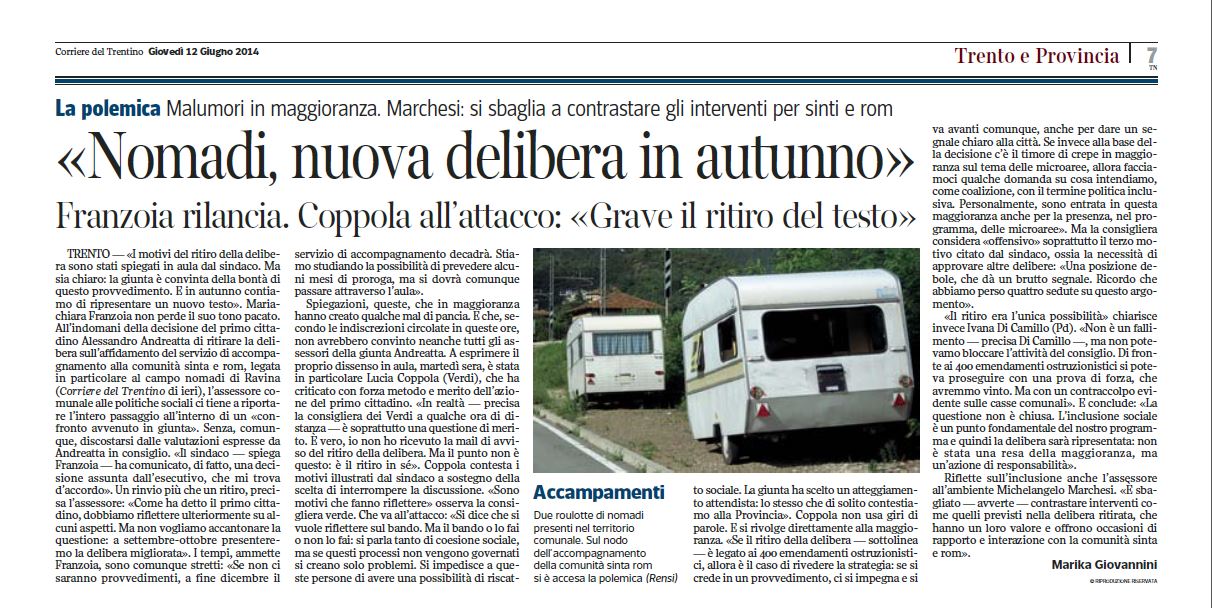 dal Corriere del Trentino di giovedì 12 giugno 2014