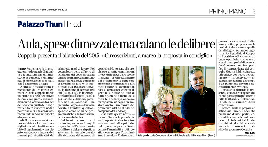 dal Corriere del Trentino di sabato 8 febbraio 2014