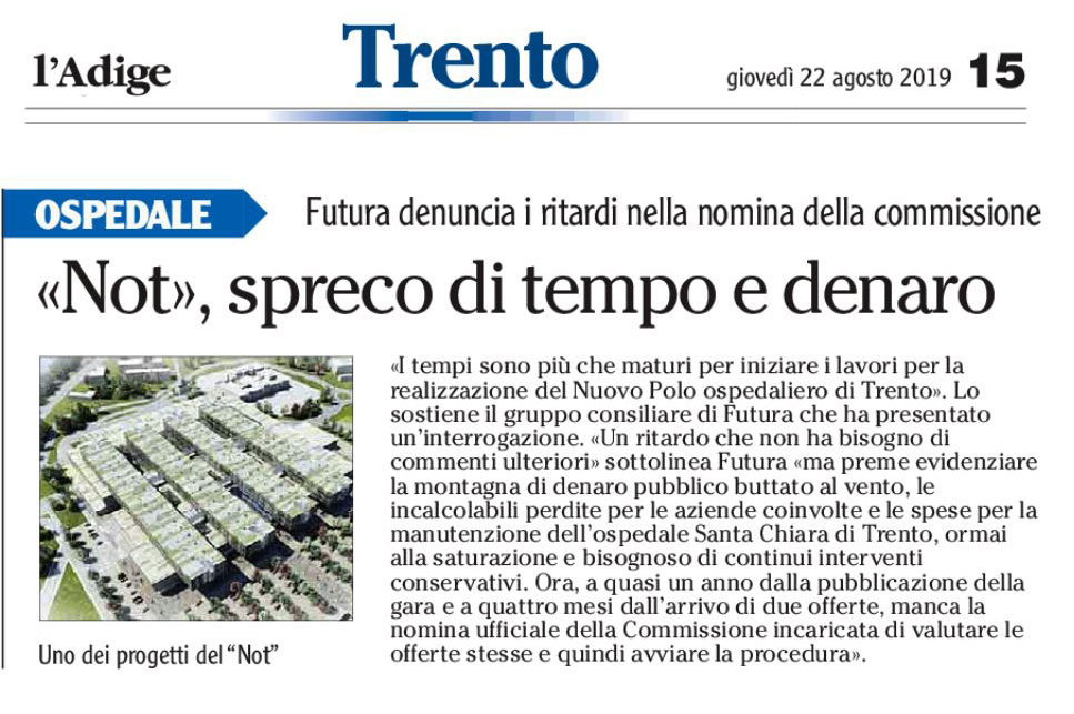 NUOVO OSPEDALE DI TRENTO: I TEMPI SONO PIÙ CHE MATURI PER INIZIARE