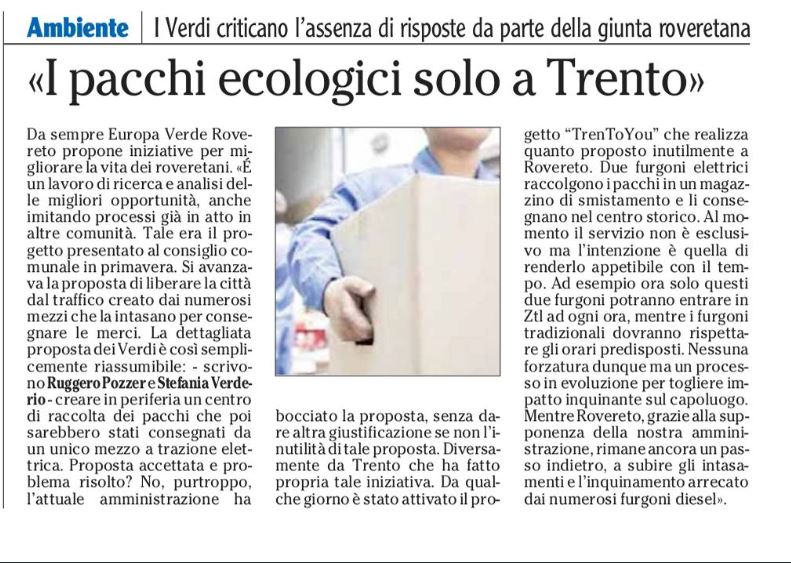 «I PACCHI ECOLOGICI SOLO A TRENTO»