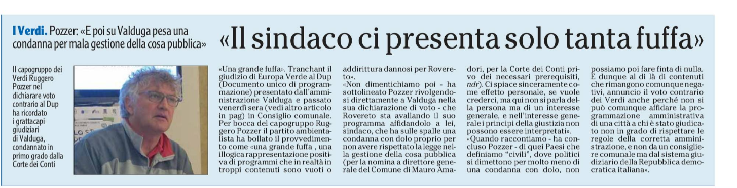 I VERDI / Pozzer: «E poi su Valduga pesa una condanna per mala gestione della cosa pubblica»